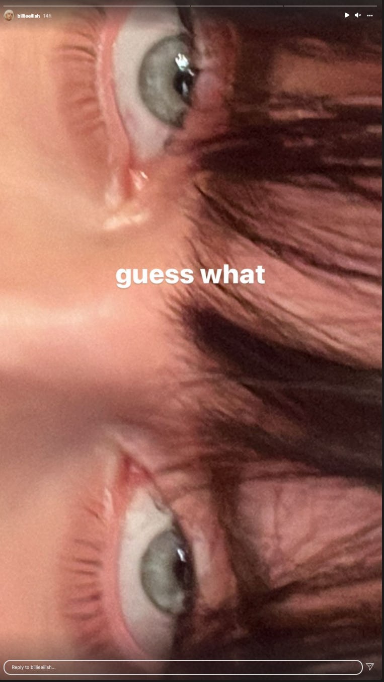 The 19-year-old Happier Than Ever singer showed off a new do a shaggy brunette chop in a photo posted to Instagram on Thursday. In an Instagram Story on December 2 Eilish posted a close-up of dark brown bangs hanging over her eyes with the caption Guess what Shortly after she revealed the.